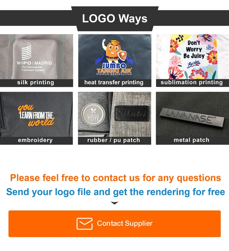 Our main products are backpack, cooler bag, travel bag, school bag, laptop bag,cosmetic bag, waist bag, shoulder bag. We’re good at Amazon and retail bags development, most of them are backpack, cooler bag, and mommy bag, after we get client’s design layout or idea, we deeply study together with client and check request, then make out correct samples in time. Our bags logo way can be silk printing, heat transfer printing, sublimation printing, embroidery, rubber patch, metal patch, woven label, satin label.