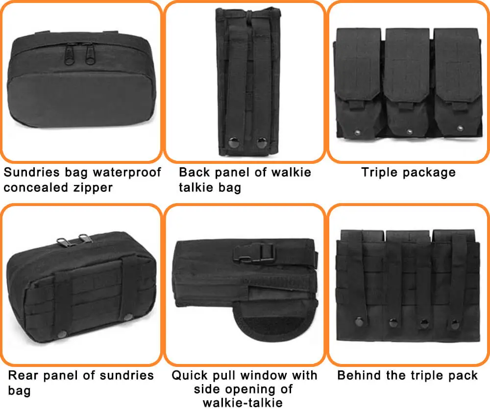 Жилет содержит 1 тройную сумку для журналов, 2 сумки для журналов и 1 сумку для хранения. Передний карман имеет защелку и застежку-липучку для карт, боковые карманы могут держать инструменты, а застежки-липучки используются для наклеек, чтобы показать вашу индивидуальность. |