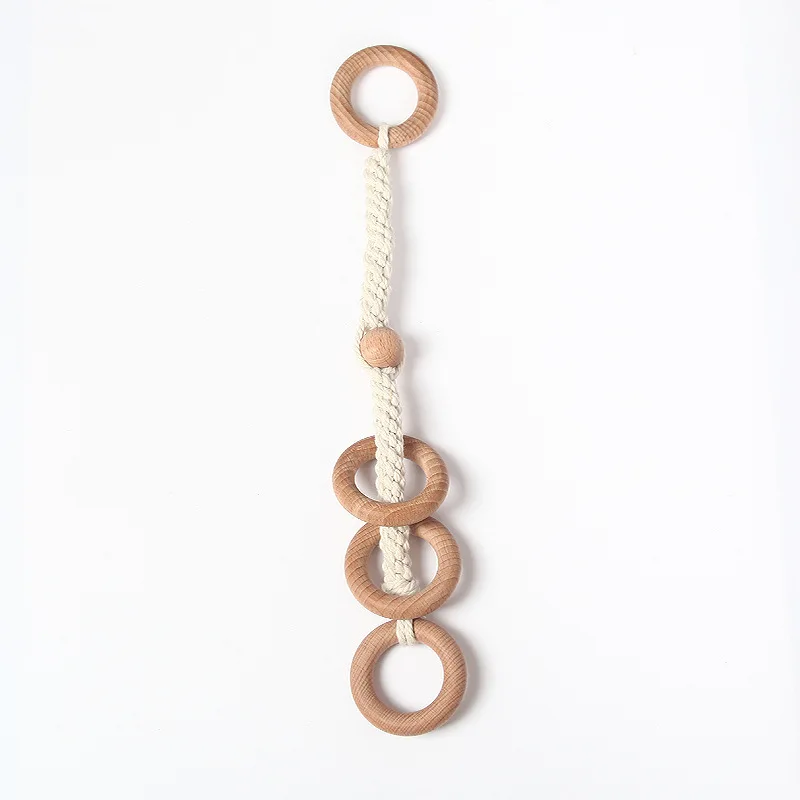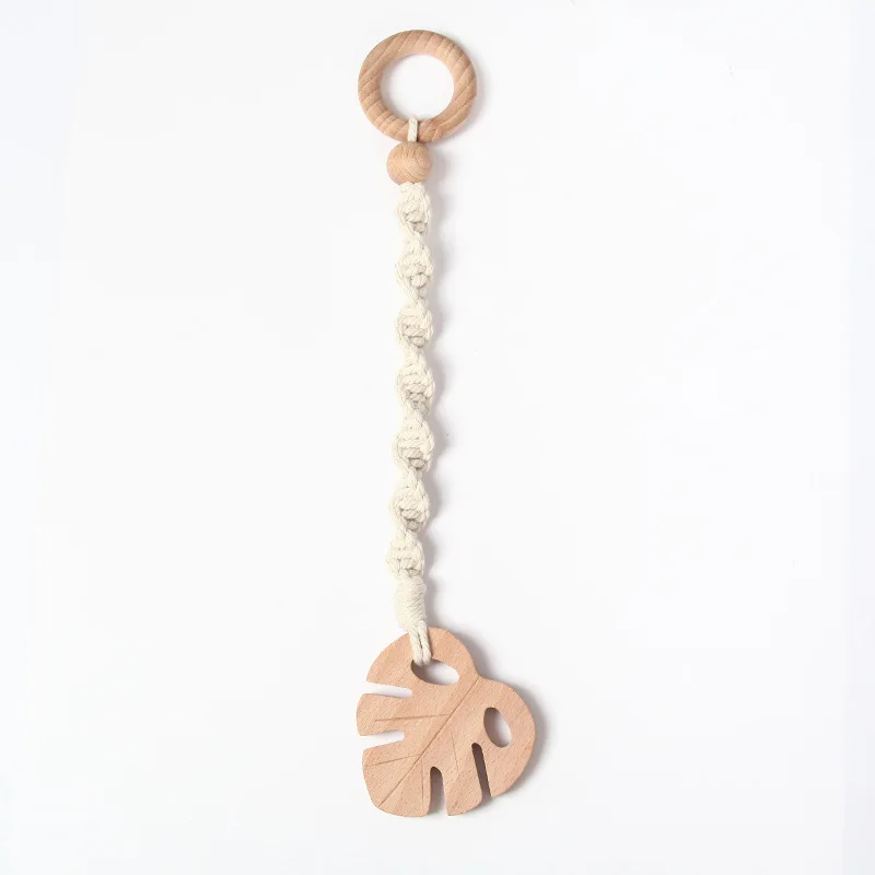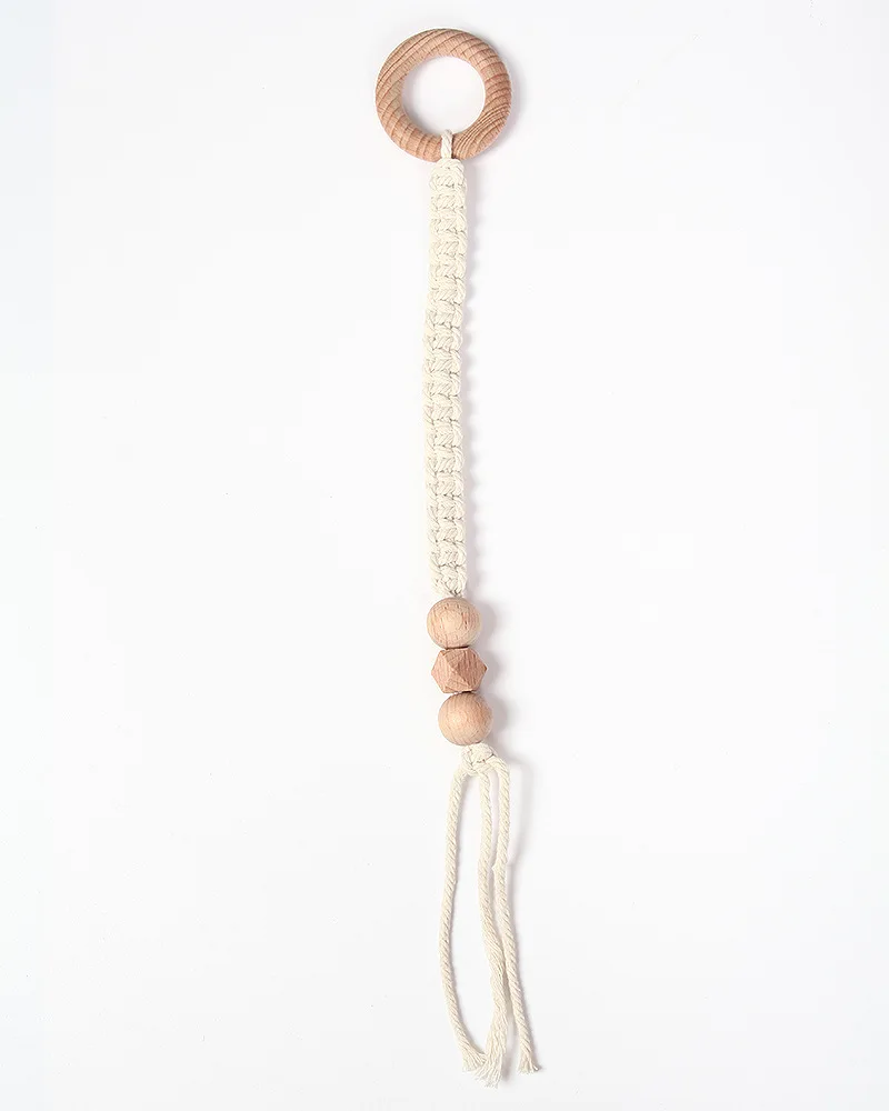 product title | Children fitness rack pacifier ornaments baby hand grip anti-drop chain comfort toy beech wood teether |