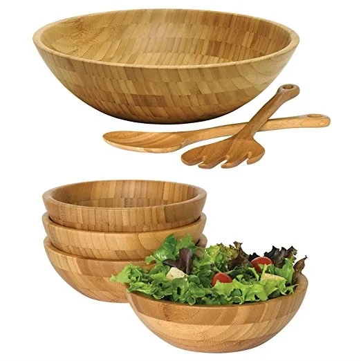High Quality Customizable Serving Big Bamboo Salad Bowl for