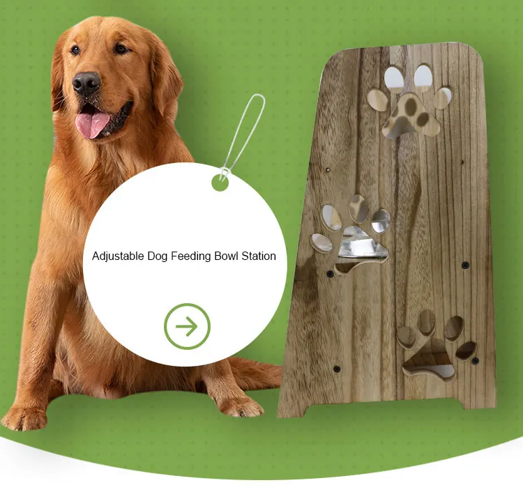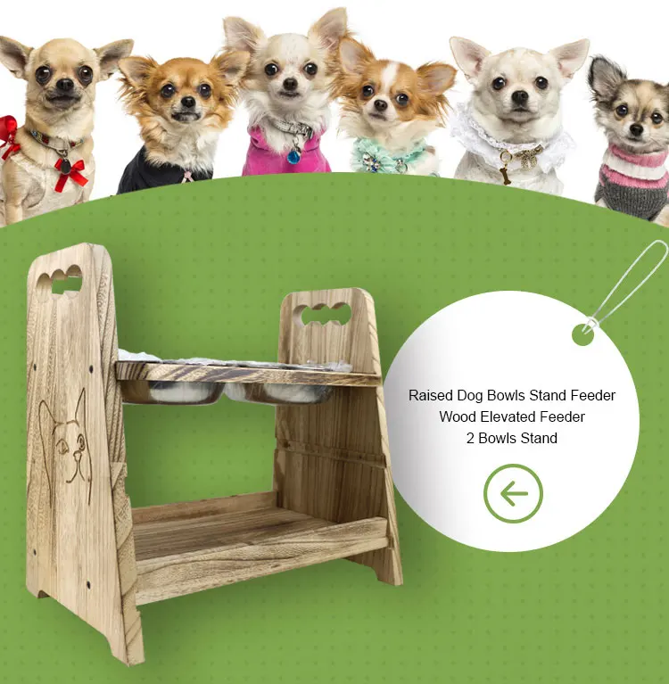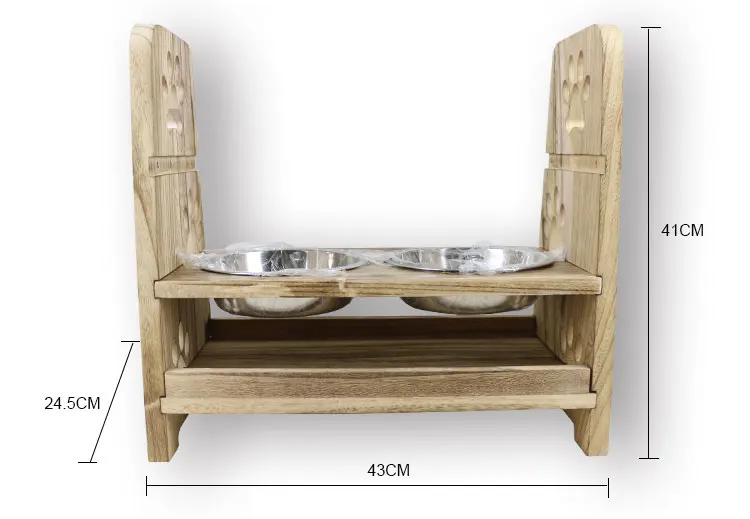 Natural wood Dog Pet Feeder Stand With Double Bowls Food Feeding