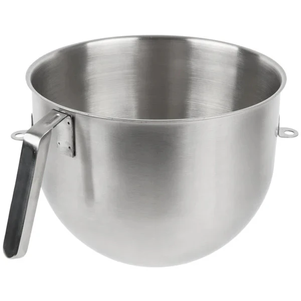 This large additional bowl is constructed of thick, durable stainless steel. It also features a flat base, which keeps your bowl steady, reducing the chances of messy spills. Its J Hook Handle is very helpful when the bowl is wet or greasy and also makes the bowl much easier to pour from plus the J Hook is designed for stacking and hanging.