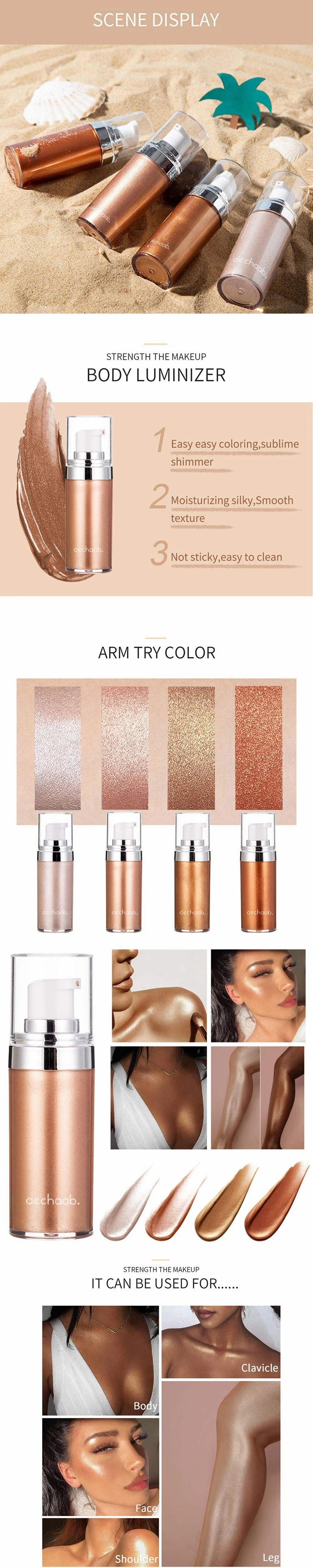 4 Colors Liquid Illuminator Glitter Smoothing Body Shimmer Lotion Highlighter Lotion For Face & Body