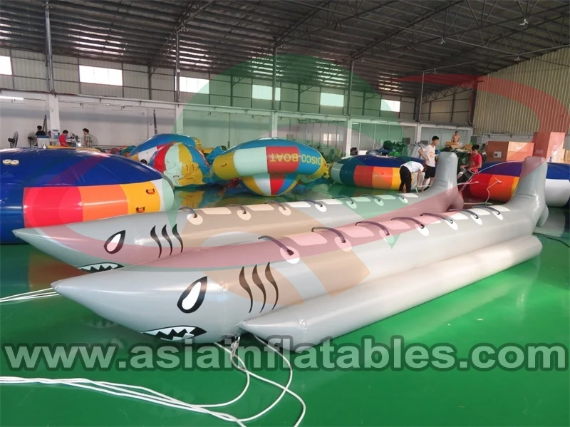 Commercial Banana Boat Passenger Towable Tube - Banana reborn, this is the next step in fun in the water and sun! Don't let those kids down (or some of you adults). 0 denier 'Heavy Commercial' Banana water boats are carefully hand crafted using reinforced 0 denier, UV resistant PVC material. This is a dense puncture resistant material, commonly used in the manufacture of high quality white water boats. Each sled is hand made using glue bonded overlapping seams and are double reinforced in the high stress - hard use areas. Thousands of these durable banana boats have been sold to camps, commercial beach operations and resorts worldwide