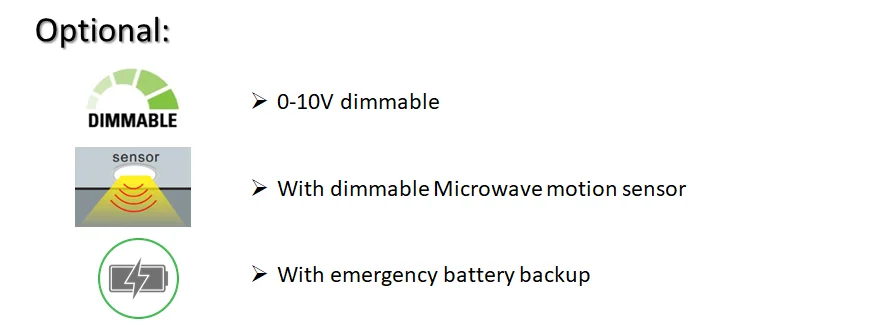 Dimmable, Microwave motion sensor, Emergency battery back up, Linkable
