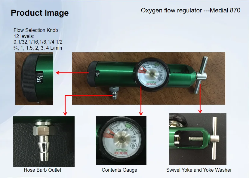 Factory price oxygen tank regulator medical 870 barb 4L