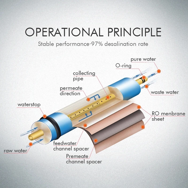 800 GPD 0.0001um точность 97% соль отклонить Китай цена ptfe спираль hepa промышленности фильтры завод воды при помощи обратного осмоса