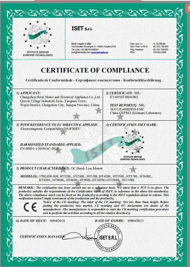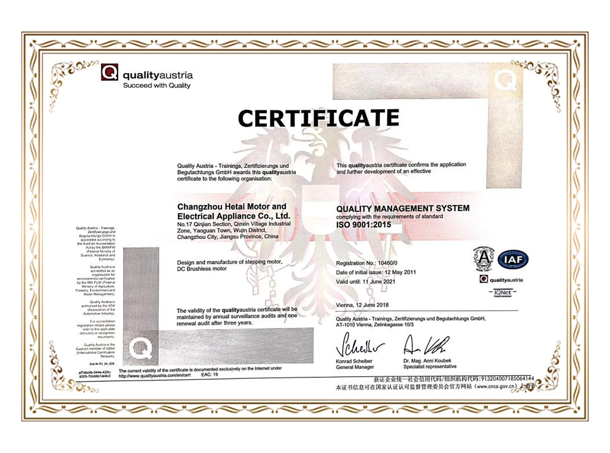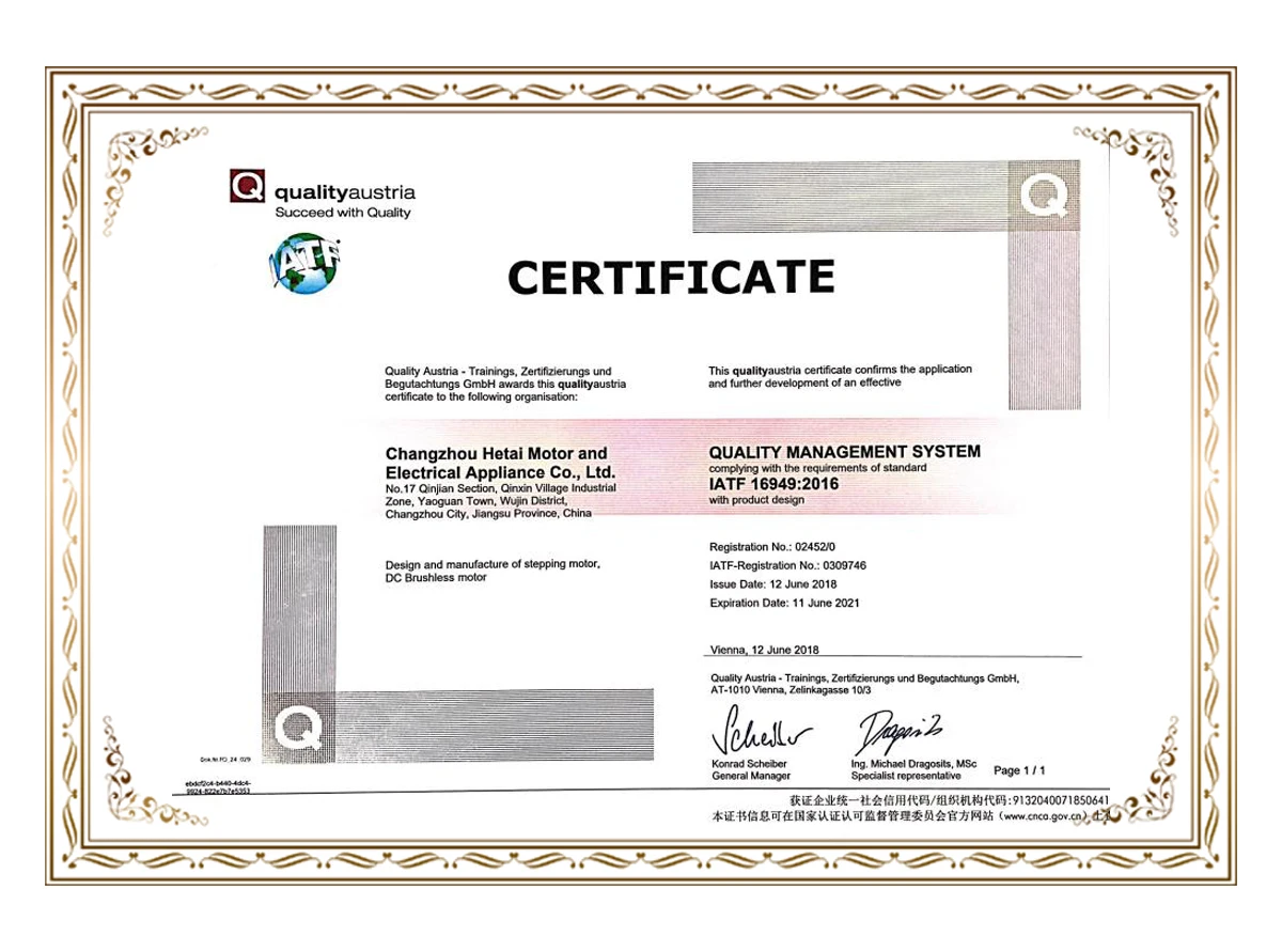 Hetai is located in ChangZhou, JiangSu province. Our workshop area is over 15,000㎡. Since Hetai founded in 1999, the specialization, scale of production has ensured to manufacture five million motors every year.