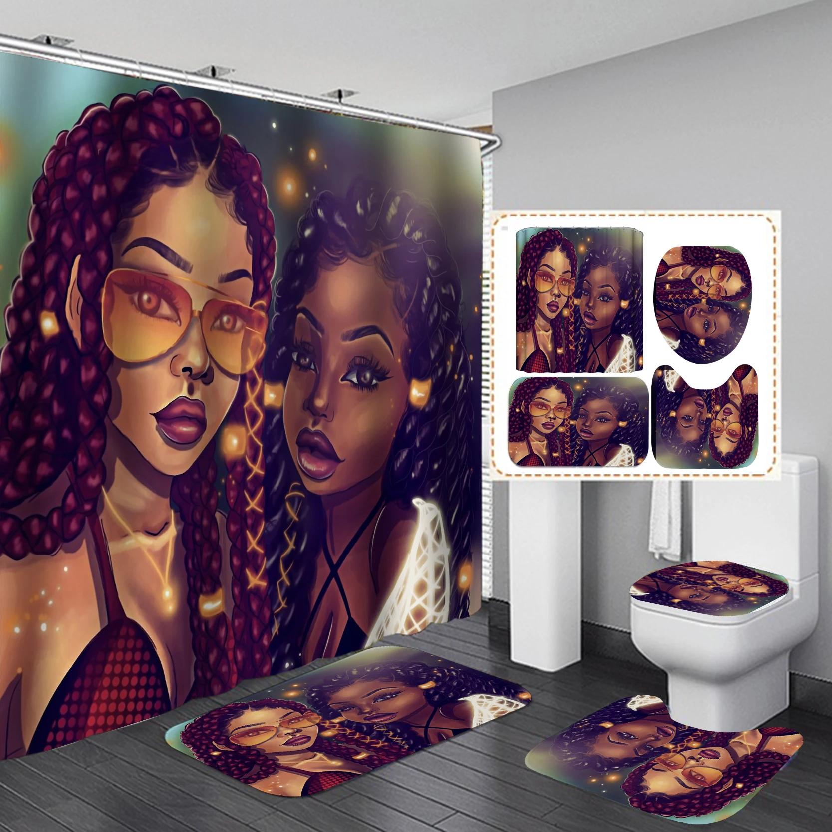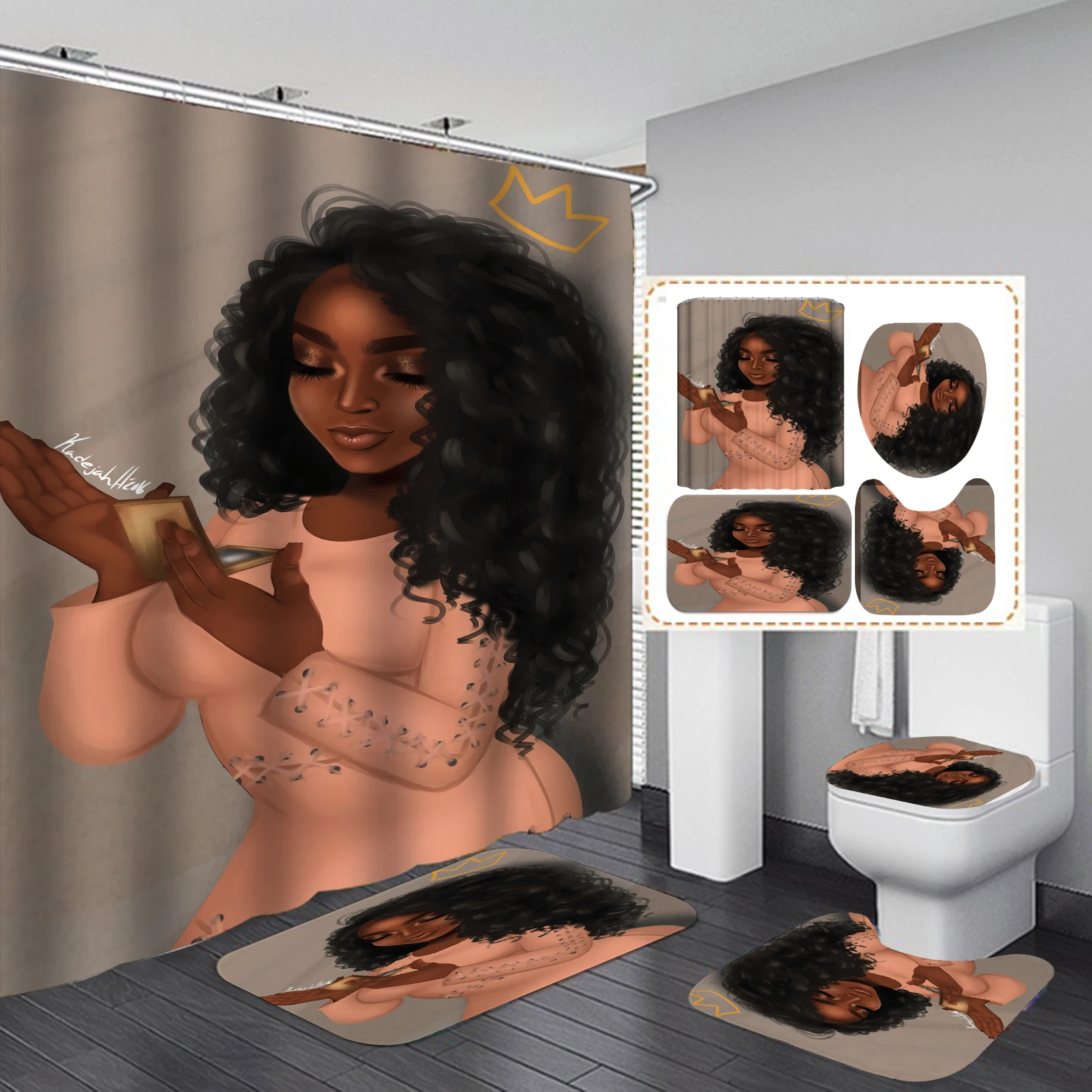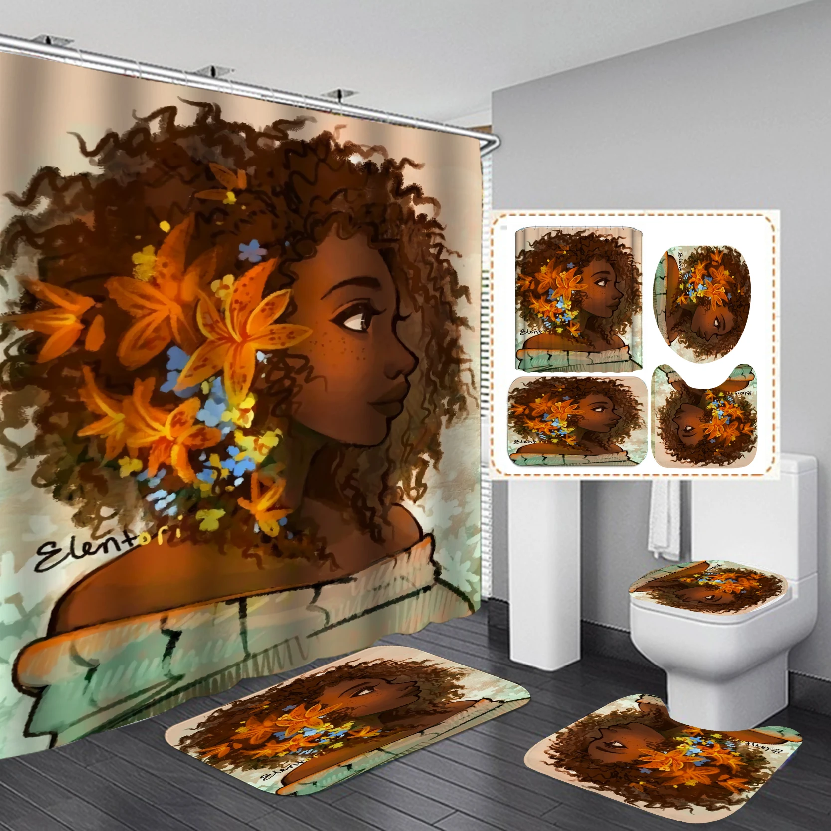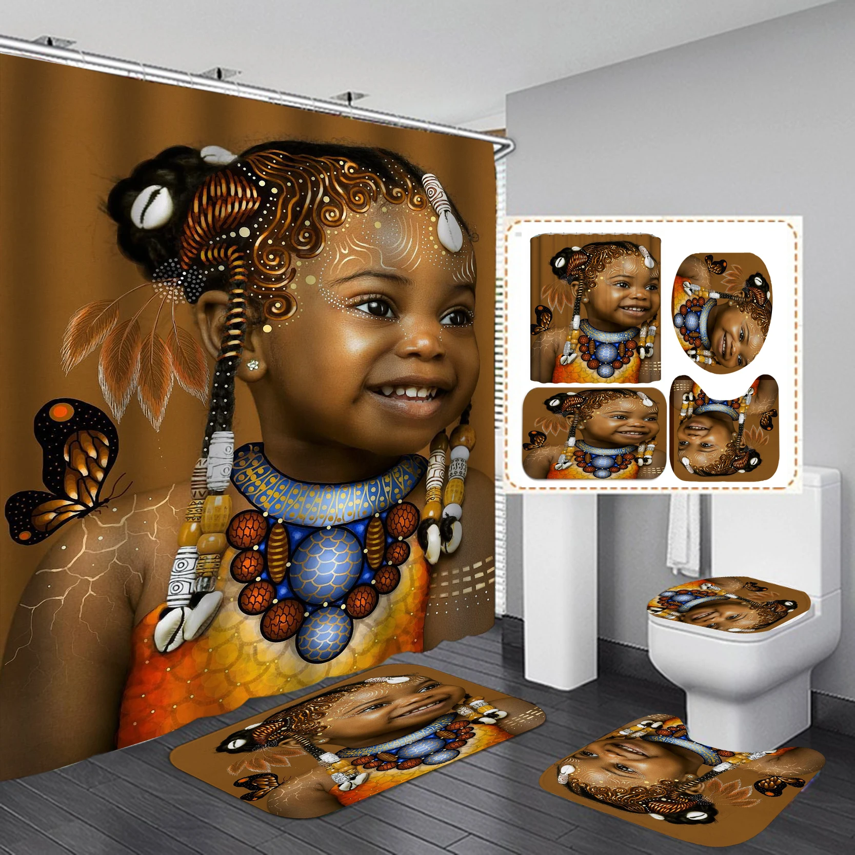 3D стили африканская девушка принт занавеска для душа набор