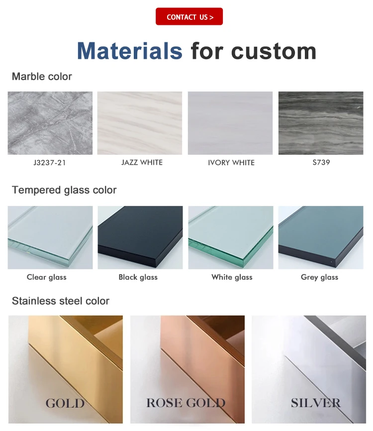 Material | 1.2mm 201#stainless steel frame,20mm marble or 12mm tempered glass | ||||