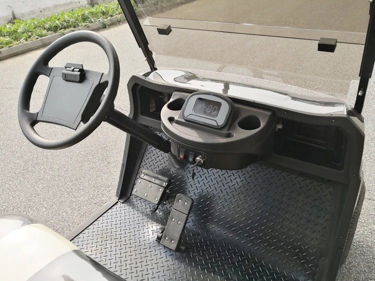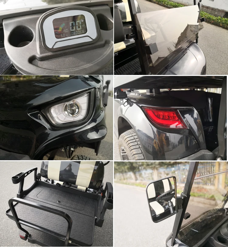 Model LS2029KSZ is our 2021 New Design Model 4 Person Electric Golf Car. It has a rear flip flop passenger seat, with armrest cupholder. The rear flip flop seat can be either used for people moving or cargo moving (when it's folded down). It can be used in many enclosed areas, such as in hotel, resort, residential community, airport, port, stations, museum, theme park, factory, campus, garden and any places where need a quite and clean vehicles etc..