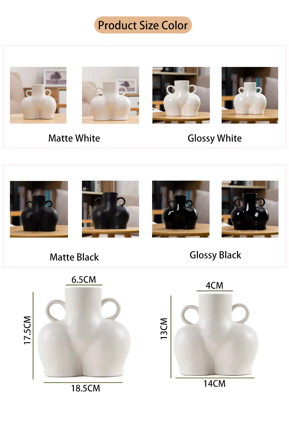 Name | Modern Creative Indoor Home White Black Small Ceramic Flower Vase Decorative Crafts Matte Glossy Body Art Vase | ||||||