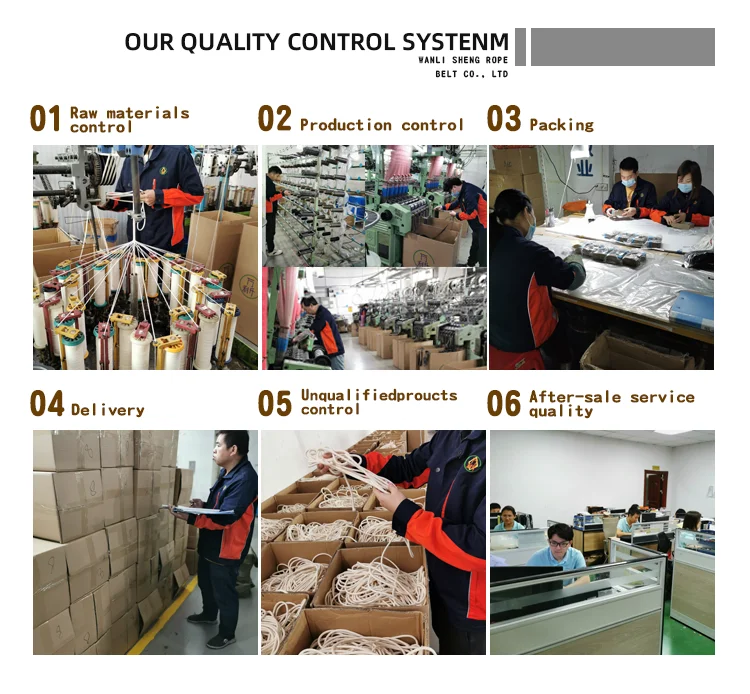 Wanli hoist belt was established in 2000. Machine equipment includes more than 80 machines such as Jacquard, rope machine, wax machine, and packaging machine. It has rich experience in rope design and technology, and focuses on the development of clothing