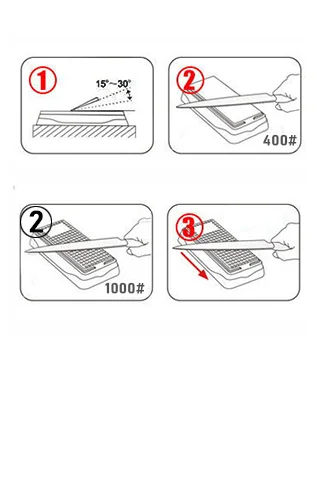 Use 400# diamond grinding surface to grind the blade back and forth at an angle of 15-30 degrees.