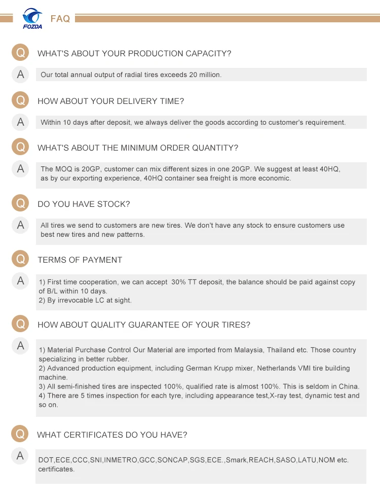 Quality warranty | TBR:180,000KM~200,000KM (south America/north America);150,000-180,000km(Middle East/ Southeast Asia ) PCR:100,000~120,069KM |