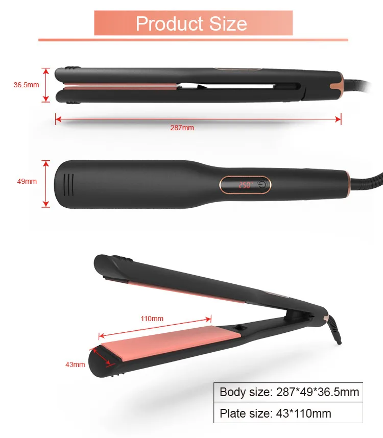 Factory Supply Black Straightening Kit Small Digital Tube Display 250High Temp Pemealing Keratin Into Plate Hair Straightener