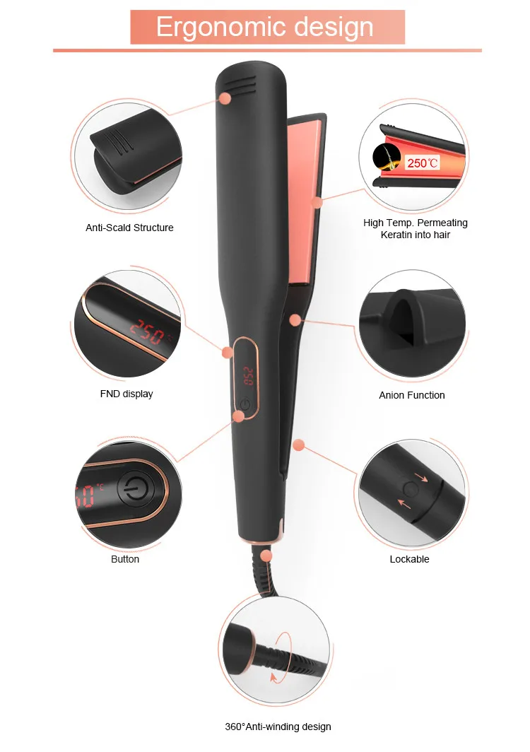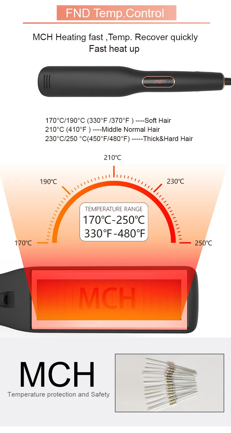 curler Plate : | 250℃high Temp.pemealing keratin into hair plate |