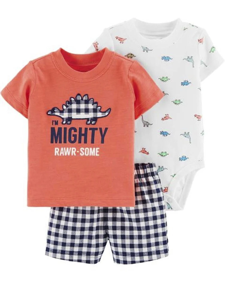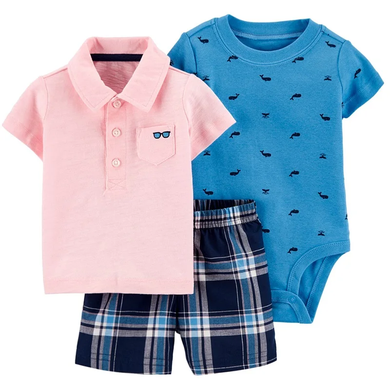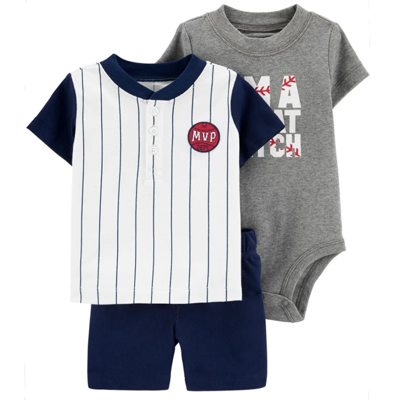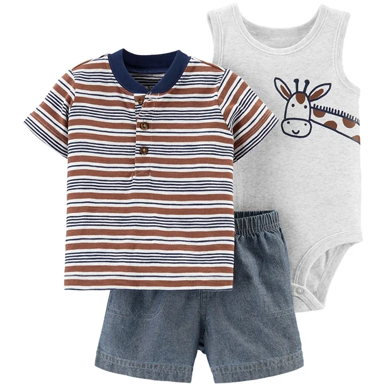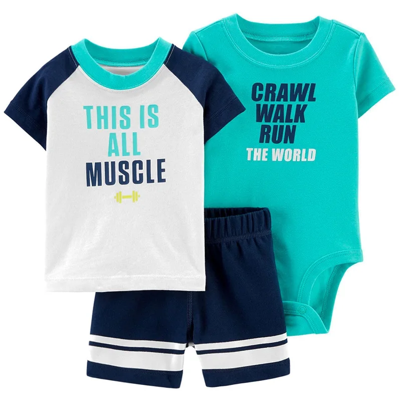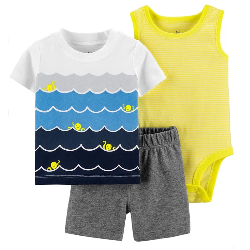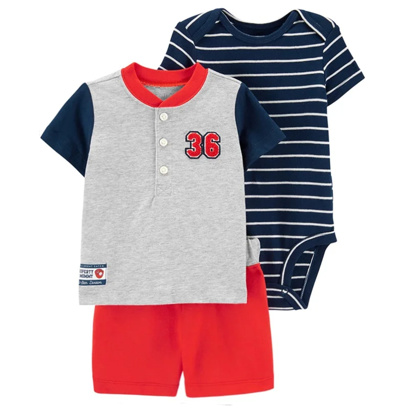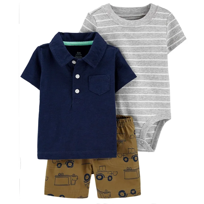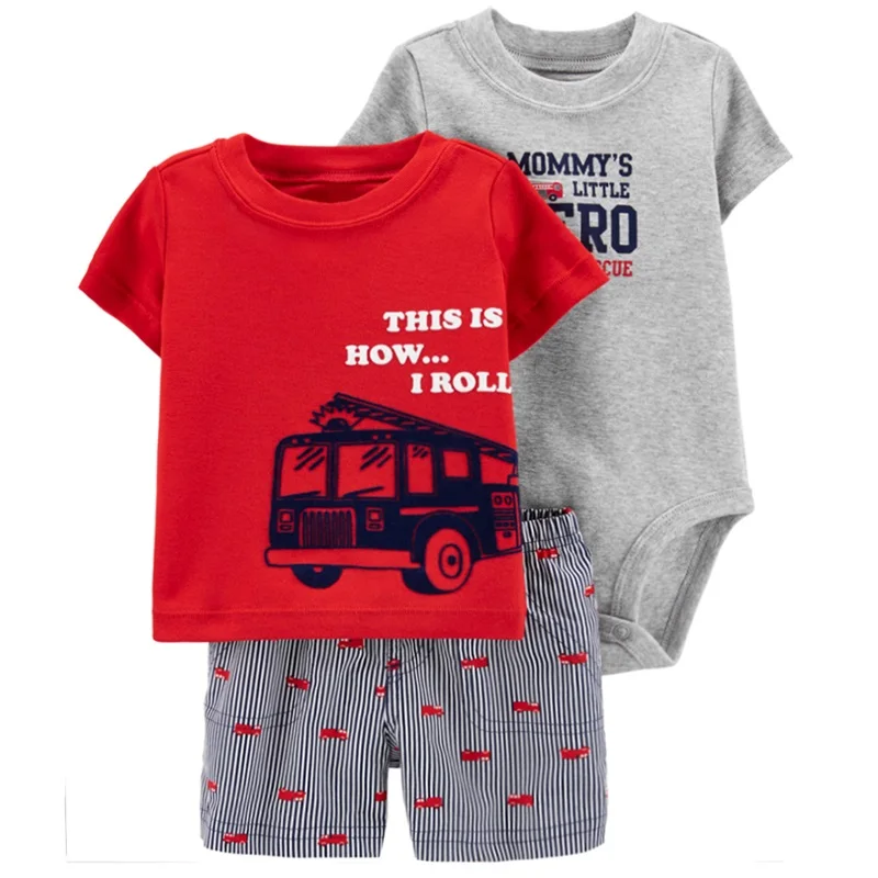 Baby boys' 3-piece bodysuit cartoon tee and short baby clothing sets