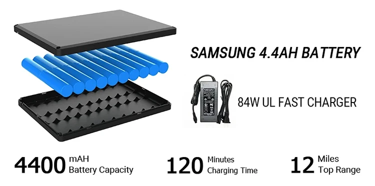 Super Range | Up to 36 Miles / 60 km (with two extended battery) |