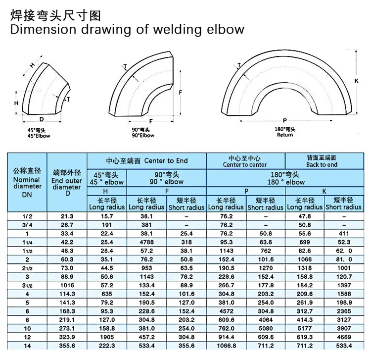 Elbow is a pipe fitting that changes the direction of the pipeline in the pipeline system. According to the angle, there are 45 ° and 90 ° 180 ° three commonly used, in addition, according to the needs of the project also includes 60 ° and other abnormal angle elbow. Elbow materials are cast iron, stainless steel, alloy steel, malleable iron, carbon steel, non-ferrous metals and plastics. The connection methods with pipes are: direct welding (commonly used) flange connection, hot-melt connection, electric fusion connection, threaded connection and socket connection, etc. According to the production process can be divided into: welding elbow, stamping elbow, push elbow, casting elbow, etc. Other names: 90 degree elbow, right angle bend, love and bend, etc.