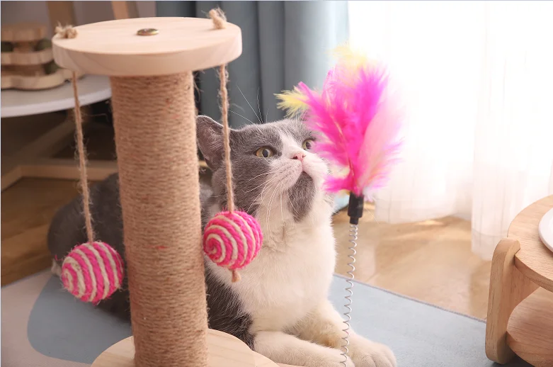 Cat scratching post, funny cat stick, rope ball, cat turntable, multi-function integration, so that cats are no longer alone and have a variety of entertainment methods.