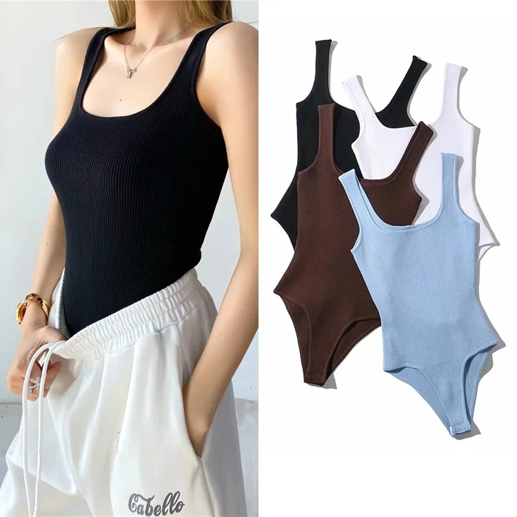 Женский трикотажный комбинезон в рубчик эластичный слитный из вискозы без рукавов с квадратным вырезом