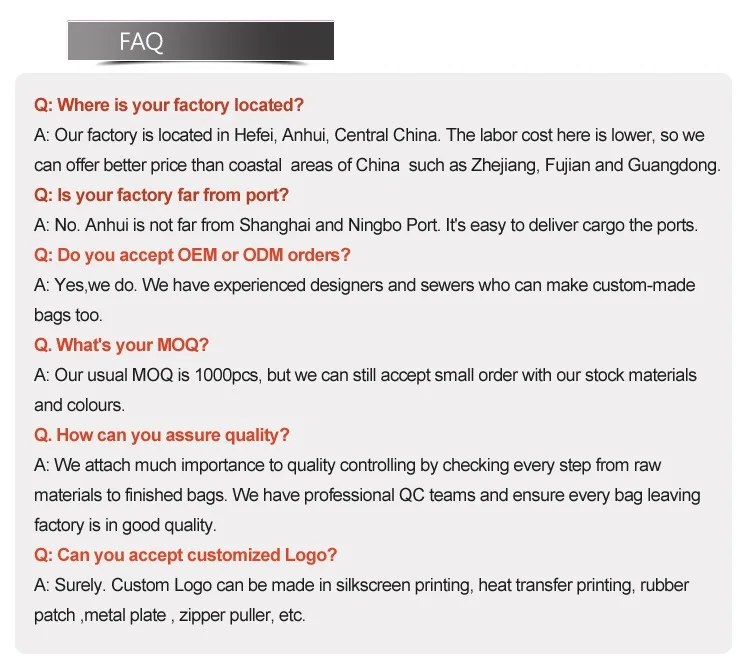 We are a leading export group in Anhui of east China. We have our own bag factory and strong in cosmetic bags. We can help design buyer's Logo and style.