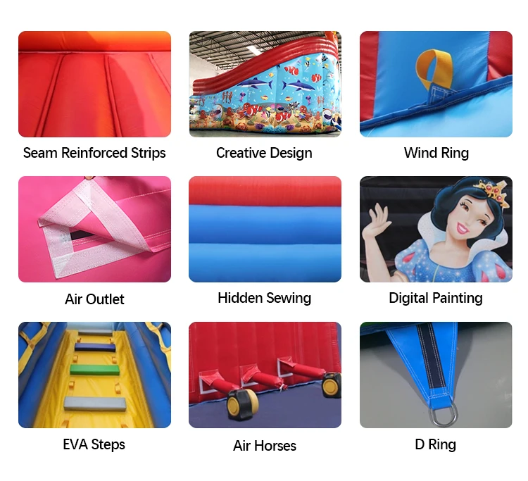 The inflatables will packed by strong PVC tarpaulin storage bag. When shipping, will have pallet at bottom to prevent transportation damage.