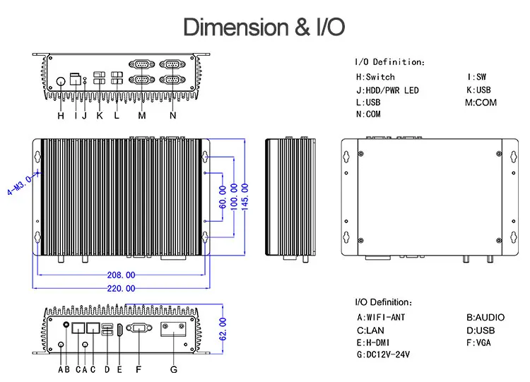 I / O | VGA | 1 x VGA / 1 x HD-MI | ||