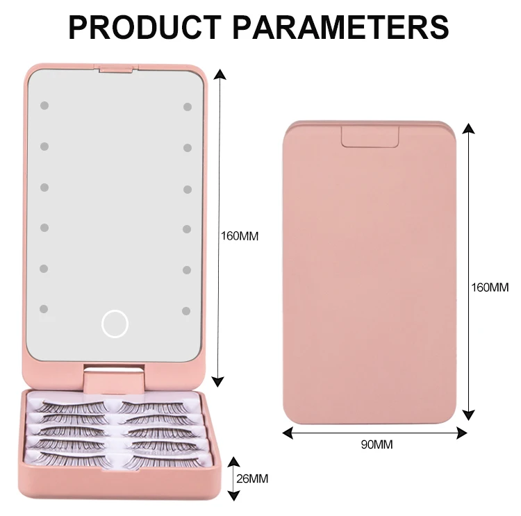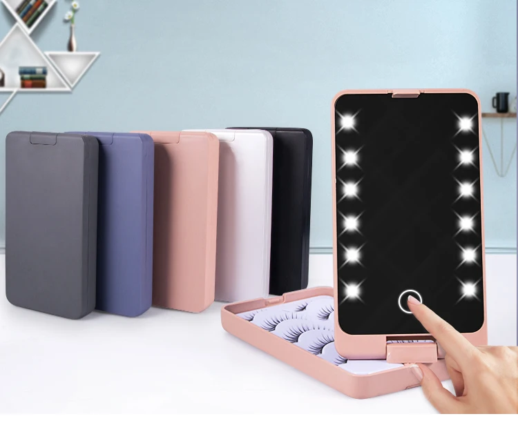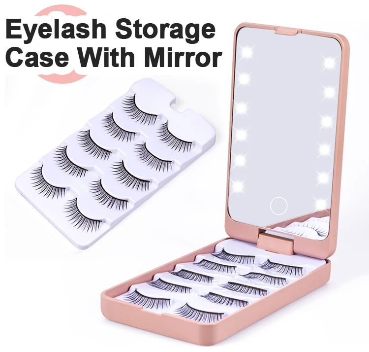 160*90*26MM Hot Selling Portable False Eyelashes Storage Box Eyelash Packaging Box Lash Case Mirror with Lights