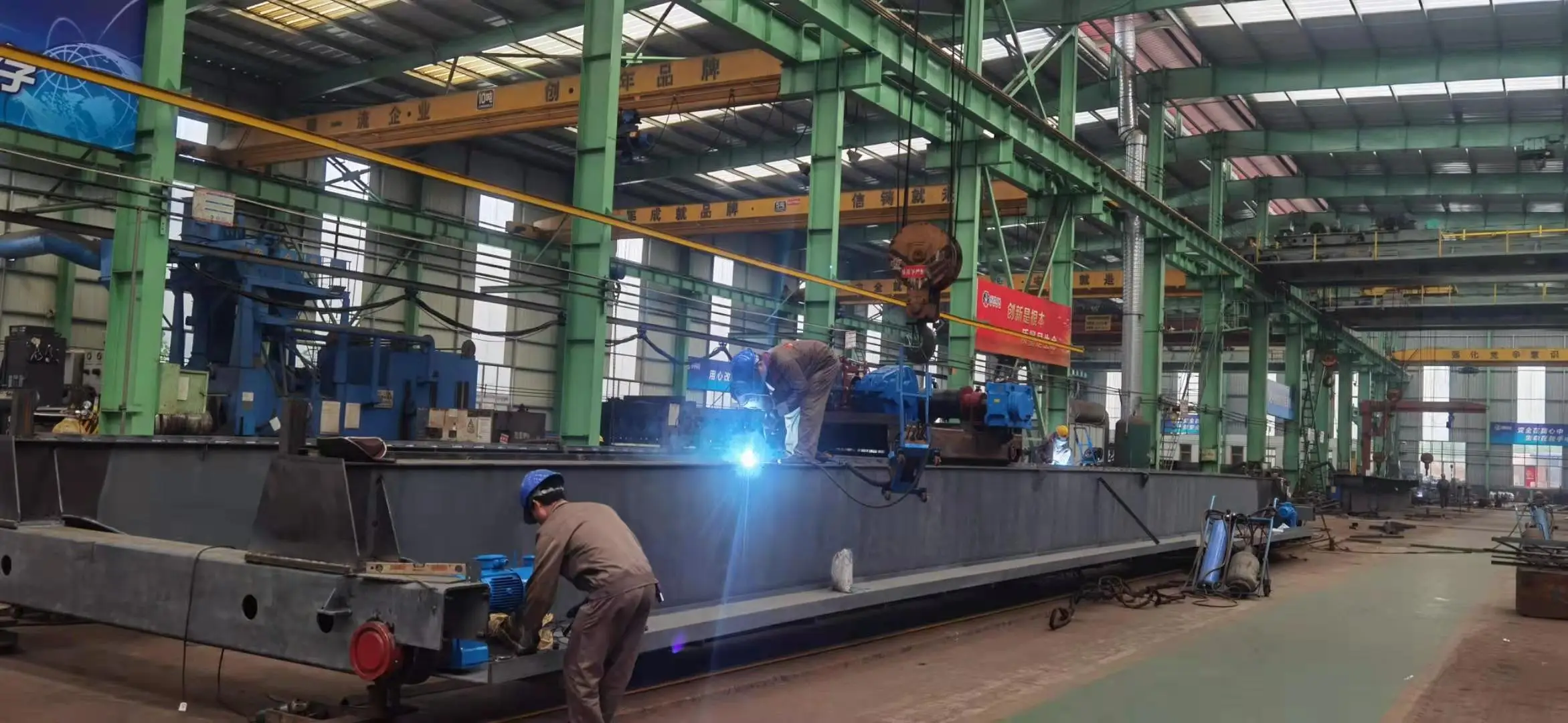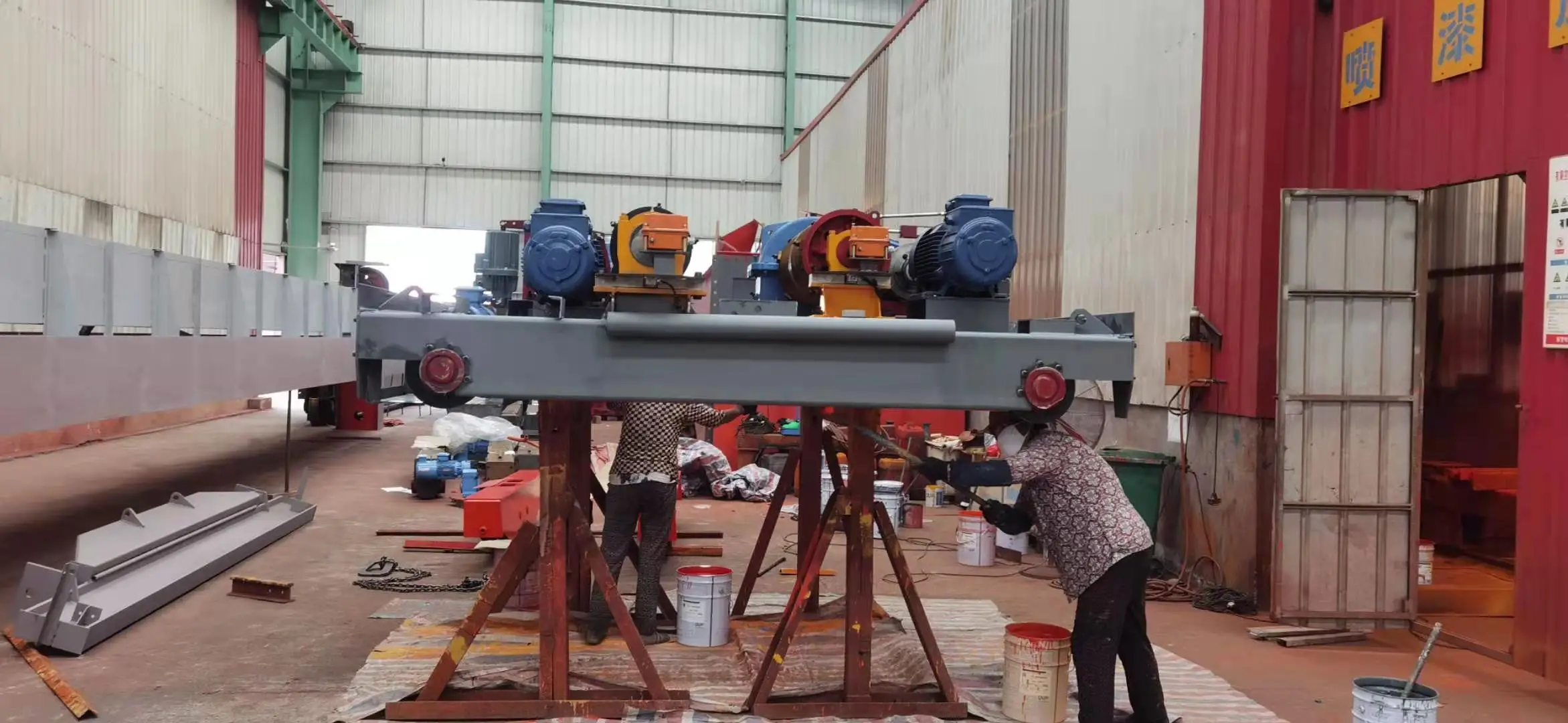Electric hoist girder gantry crane is a half sized orbit hoisting equipment,one side of the door frame is provide with supporting leg, running along the ground track on the other side,no legs,running along the upper part of the powerhouse track.Semi Gantry Crane can be divided into Three types, single girder semi gantry crane, double girder truss type semi gantry crane,and double girder box-type semi gantry crane. This kind of crane is composed of gantry frame, main girder, legs (two Sets), slide sill, lifting mechanism, travelling mechanism, and electric box. Widely used in workshop, storage, port and hydroelectric power station and some other outdoor place. This type of crane is equipped with has CD1, type and MD1 type hoist Its Lifting capacity is 5-75 tons, span is 18-35 meters, and working temperature is -20--+40°C. Its working class is A5, A6, and A7. Semi gantry crane has two control method, wireless control and cabin Control. |