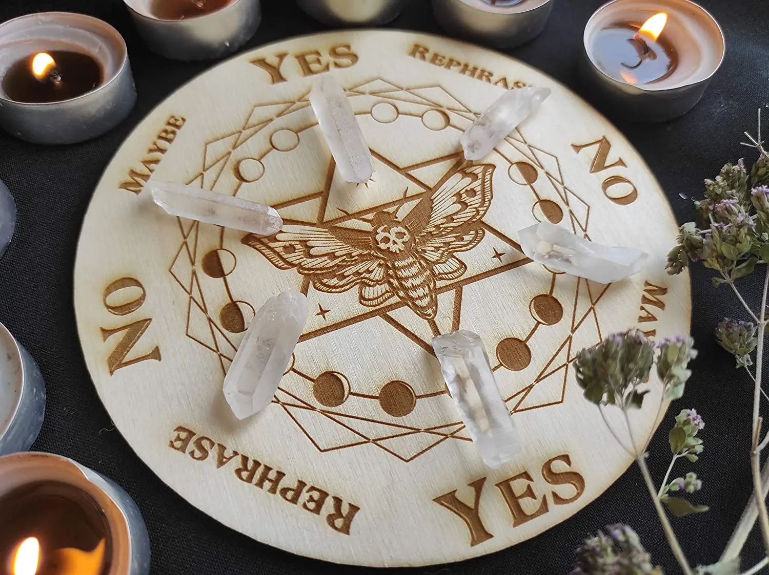 This listing for pendulum board with Moon Phase. This plywood board can be used to display your crystals, keep candles, for divination or as an altar mat or wall decor in the larger sizes, or you can use it as you want.