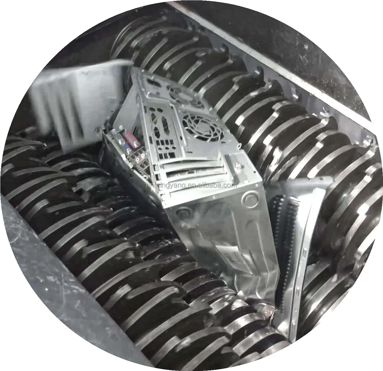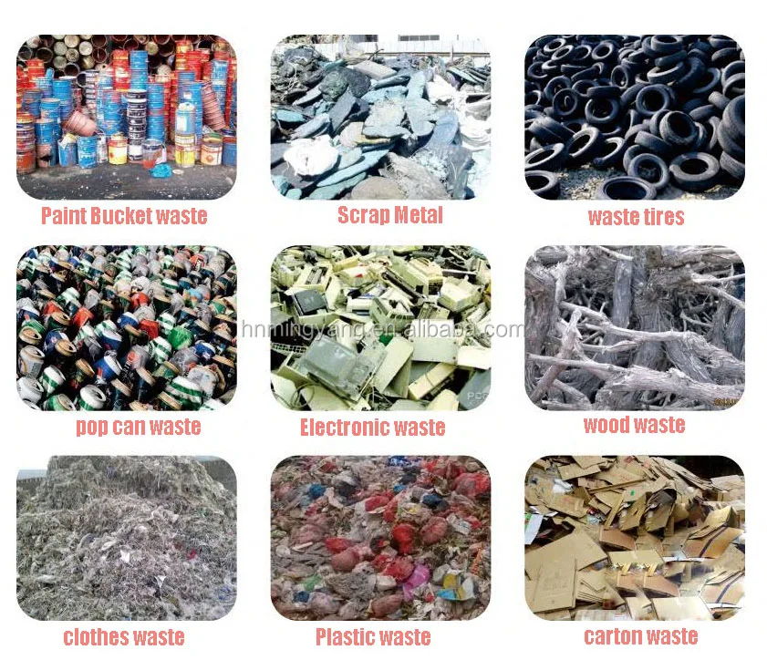 This machine can shred many kinds of materials: waste metal, plastic, rubber, tire, car, radiator, cable wire, clothes, wood…etc.