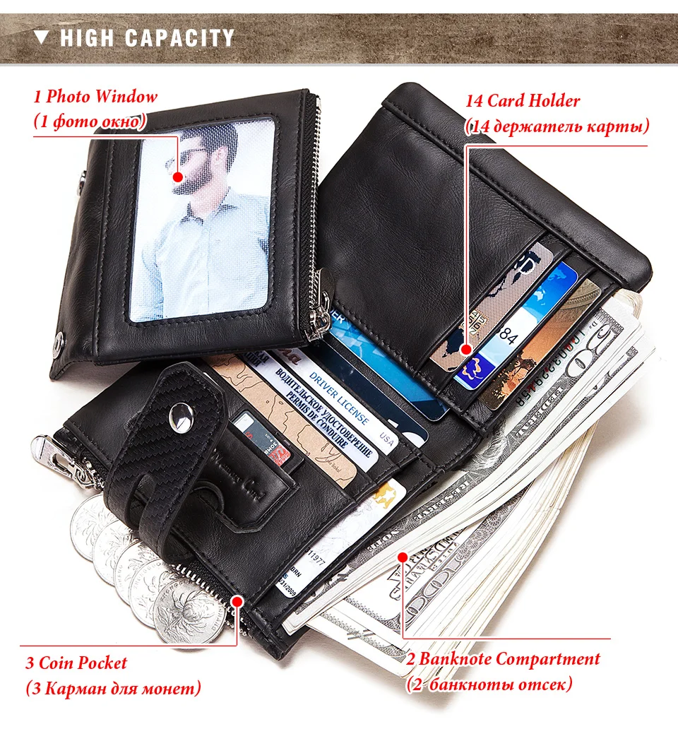 1. Натуральная коровья кожа, минималистичный, прочный, многофункциональный, RFID