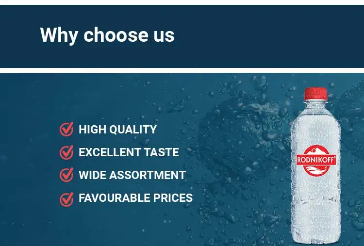 Rodnikoff drinking water is safe for human consumption in terms of microbiological, radiological and parasitological indicators. It is chemically harmless and has favorable organoleptic properties. In terms of the total salt content, drinking water does not exceed 1 g / dm . It is a high-grade water that has the properties of the internal environment of the body. Due to this, metabolic processes in the body are activated, toxins and waste are washed out from the intercellular fluid and the whole body.