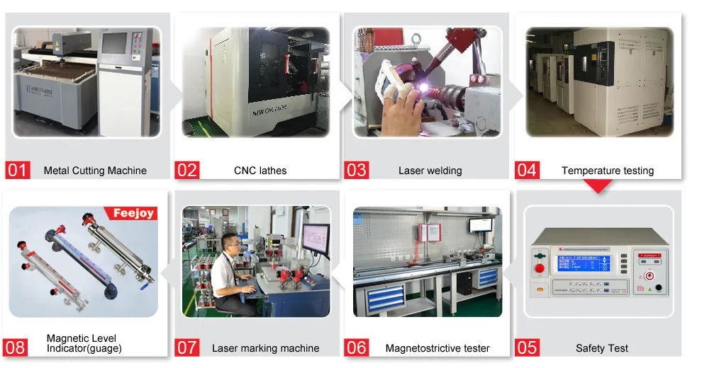 The Ultrasonic Level Measurement is mounted on top of the vessel. Under the control of the electronic unit, the probe emits ultrasonic wave pulse to measured medium. The sound wave is reflected by the surface of medium, a part of reflection echo is received by the probe and converted into electrical signal. From the emission of the ultrasonic wave to the new reception, the time is direct proportion to the distance from the probe to the measured medium. The electronic unit detects the time and calculates out the measured distance according to the known sound velocity. Use subtraction to obtain the value of medium position.