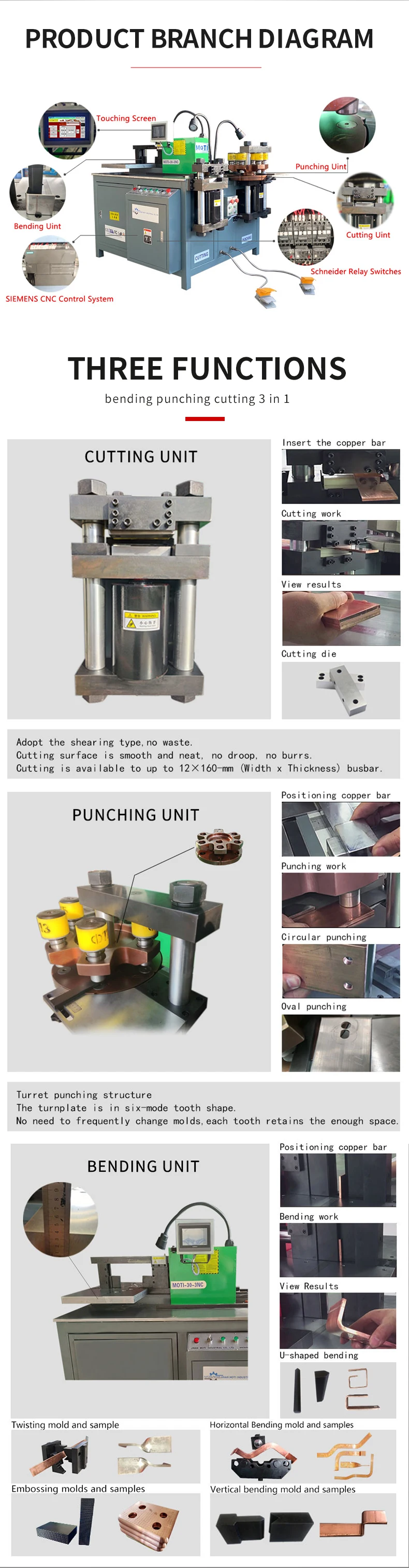 In general,Busbar Machine has 3 main functions of bending, cutting, and punching.