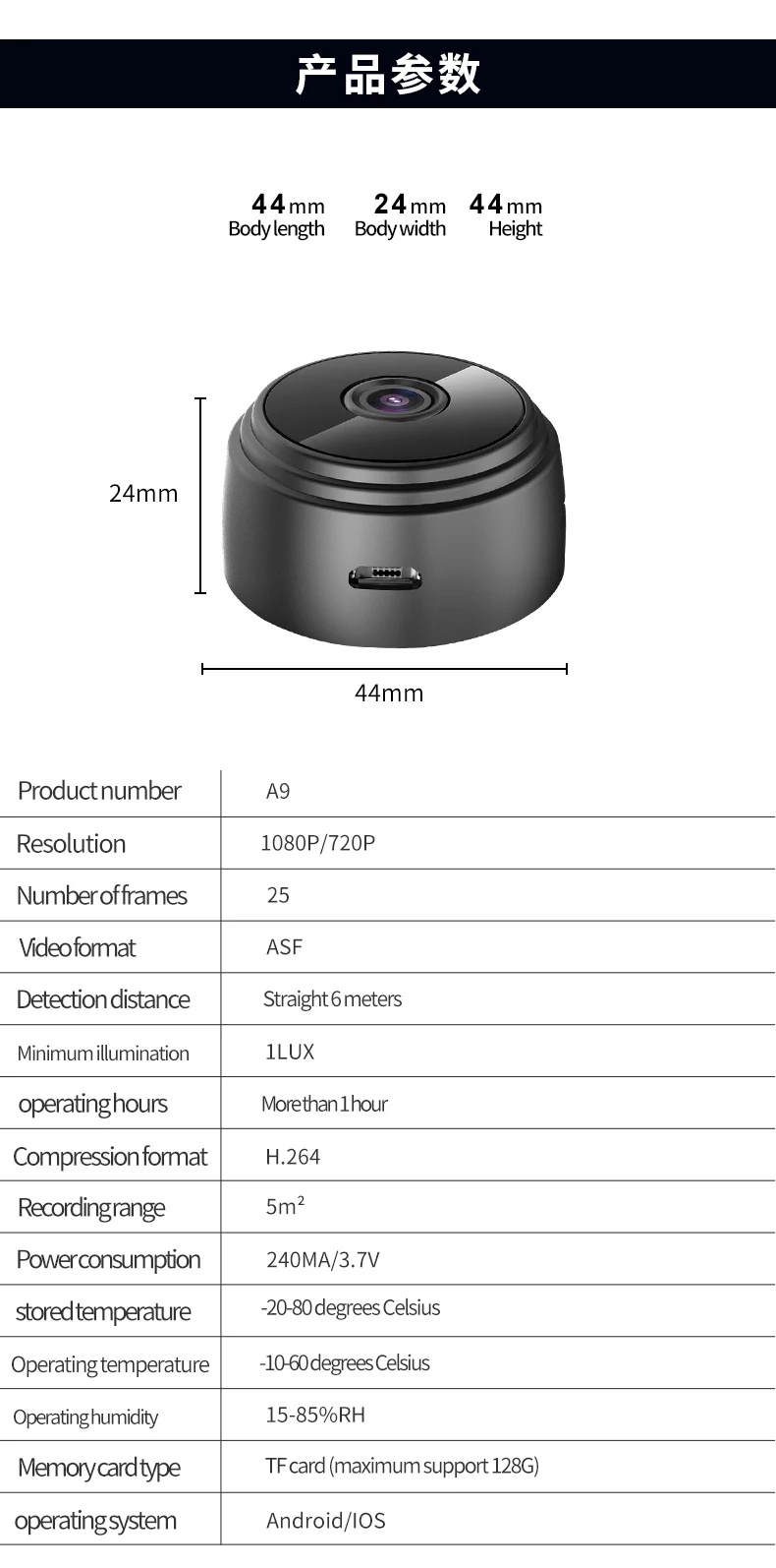 Водонепроницаемая беспроводная мини-камера видеонаблюдения с функцией