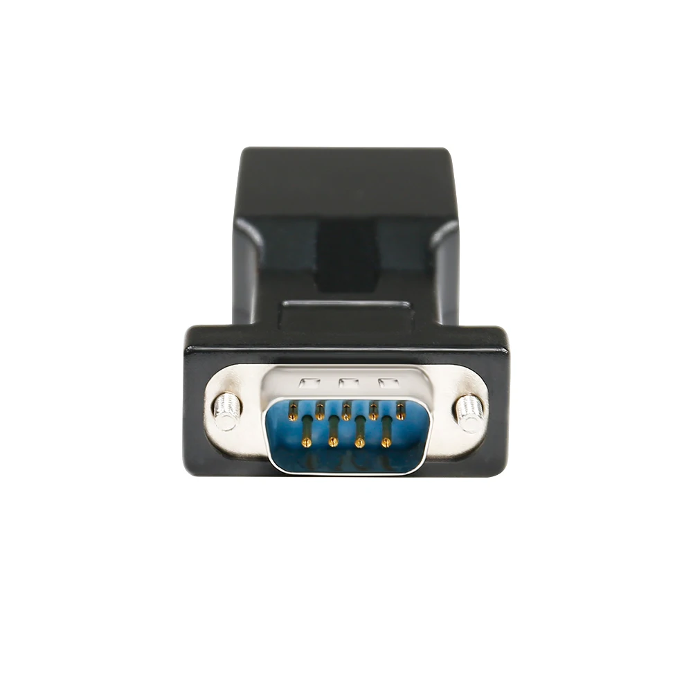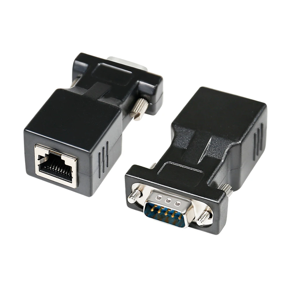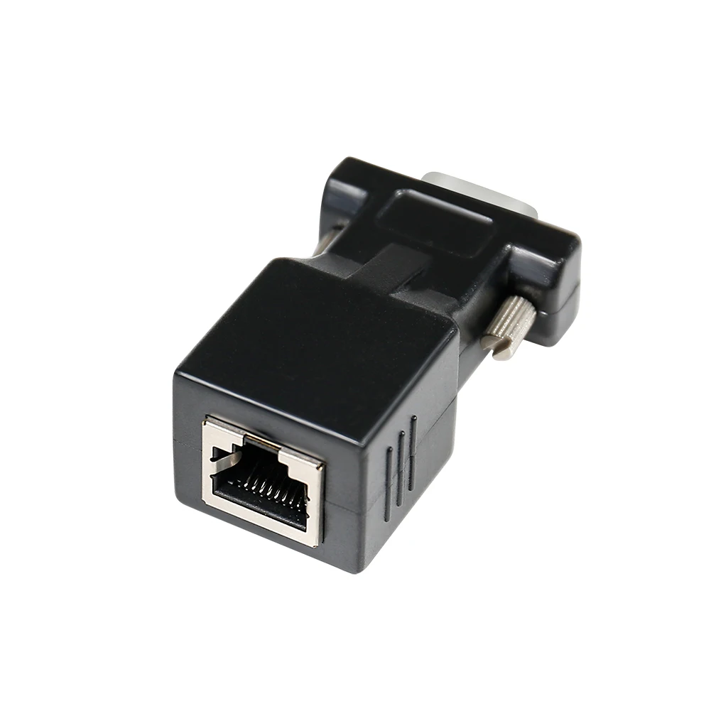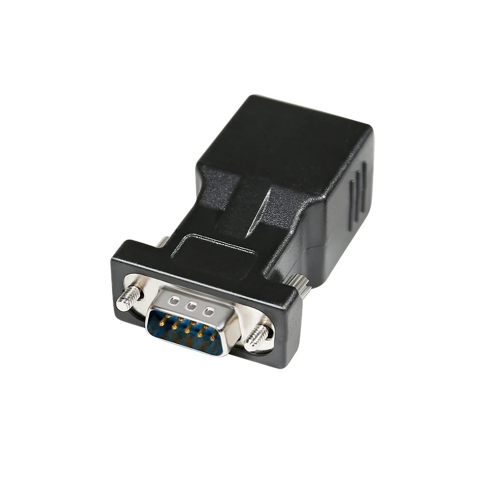 Product introduction * A simple, cost effective solution to process serial data communication between RS232 COM port devices over inexpensive cat5 cat6 RJ45 network cable * DB9 male to RJ45 modular adapter converts DB9 male connector into an RJ45 female connector (DB9 male - RJ45 Female pinout: 1-8, 2-2, 3-1, 4-7, 5-6, 6-5, 7-3, 8-4, 9-x) * A pair of DB9 to RJ45 socket coupler can be used a extender to extend rs232 serial signals up to 65ft * Bi-directional DB-9 male to RJ-45 female converter comes with thumbscrews for easy and secure connection * (Please be noted it's NOT 15 pin VGA video port) It's compatible with Standard 9 Pin D-sub RS-232 Devices e.g. computer laptop, printer, modem, router, PDA, POS device, digital CNC machine tool, Barcode scanner, etc. |