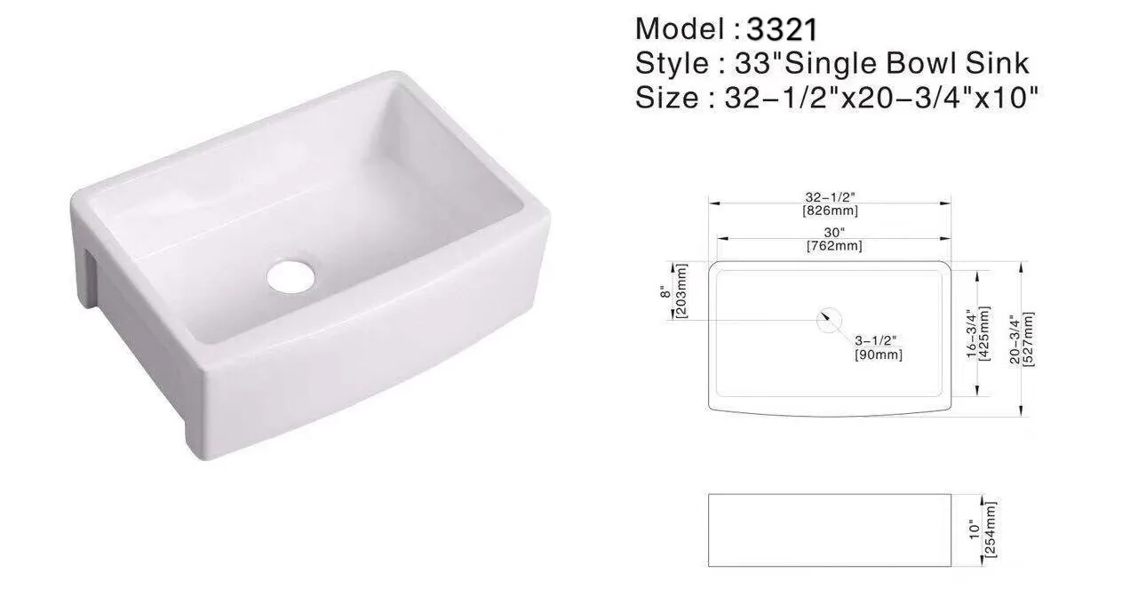 Product Name | Aquacubic 33 Inch Apron front Single Bowl Ceramic Kitchen Sink |