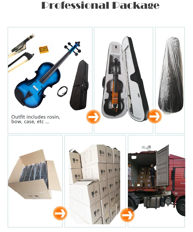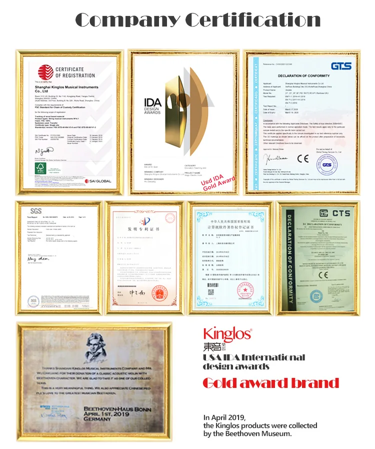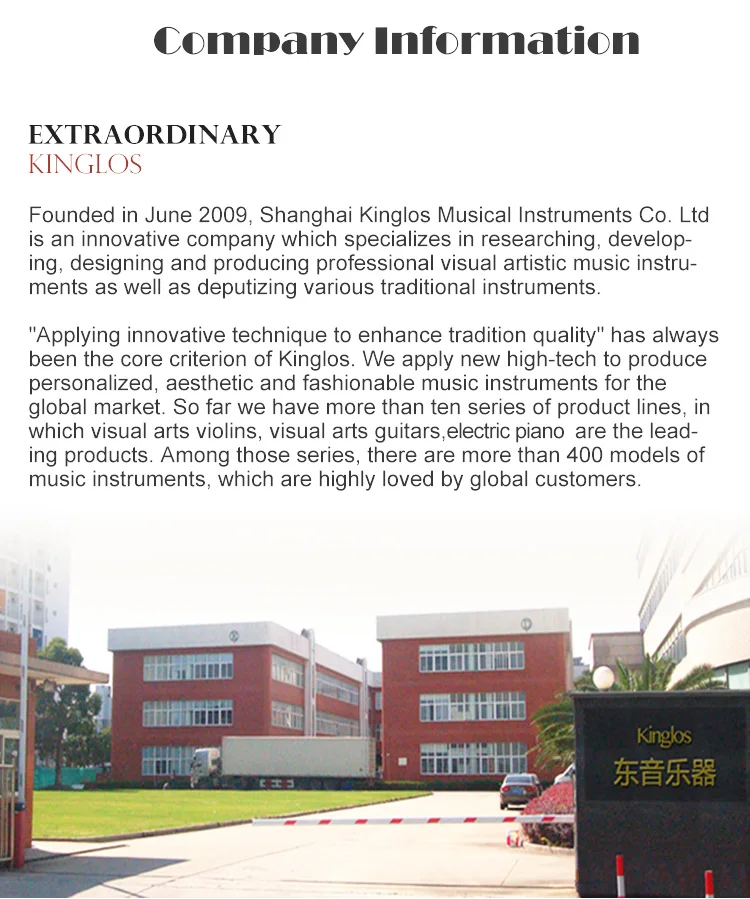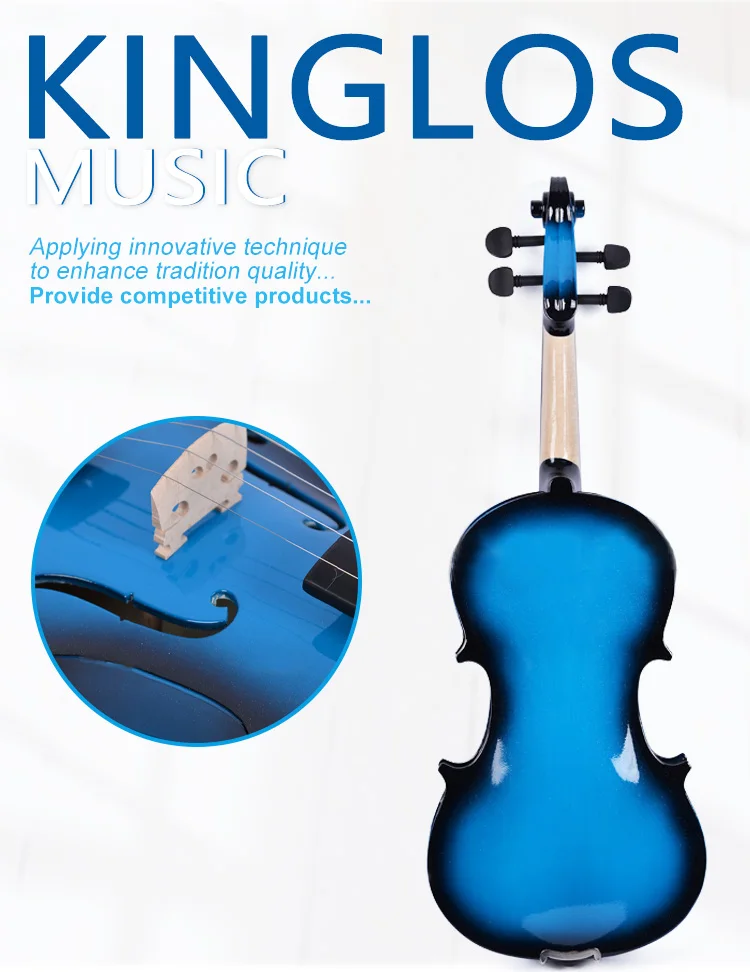 Made with patented painting technique to guarantee the principles of violin's vibration and sound production, Kinglos Visual Arts Violins are in beautiful tone quality, quite different from those lacquer spray finished violins in solid red, yellow, blue, white and black ect in present market.
