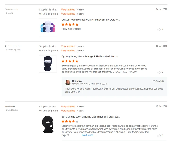 Yiwu City Yongfei Knitting Co.,Ltd whose real name was Yiwu Yongfei Knitting Factory, It was established in 1987, in 2005 changed the name to Yongfei, who located in Yiwu City, Zhejiang Province, relying on Yiwu International Small Commodities City, which is the largest commodities distribution center in China even worldwide. Yongfei Knitting company currently employs 100 people, 10 sales people in foreign trade team, 5000 square meters plant area. We are professional on knitwear lines(main products are Multifunctional seamless headwear, scarf, knitting hat, kerchief, gloves, polar fleece sets and other series of knitting products.Our company has our own Research and Development Team, Production Management Team. We always produce designs of customers' requests. Yongfei owns the most responsible and professional sales team, we always keep a friendly business relationship with clients. We own a good reputation domestic and outside markets all the years since the first we founded.Our