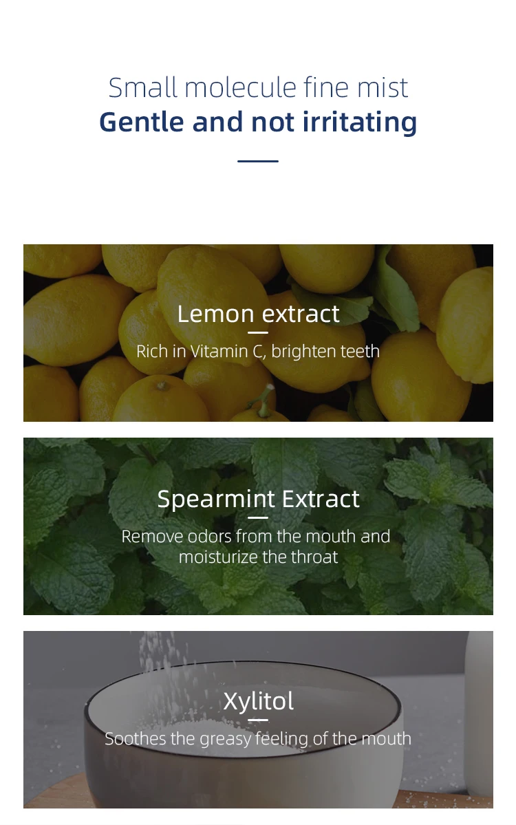Ingredient | Lemon extract, spearmint extract, Menthol, Xylitol, etc. |
