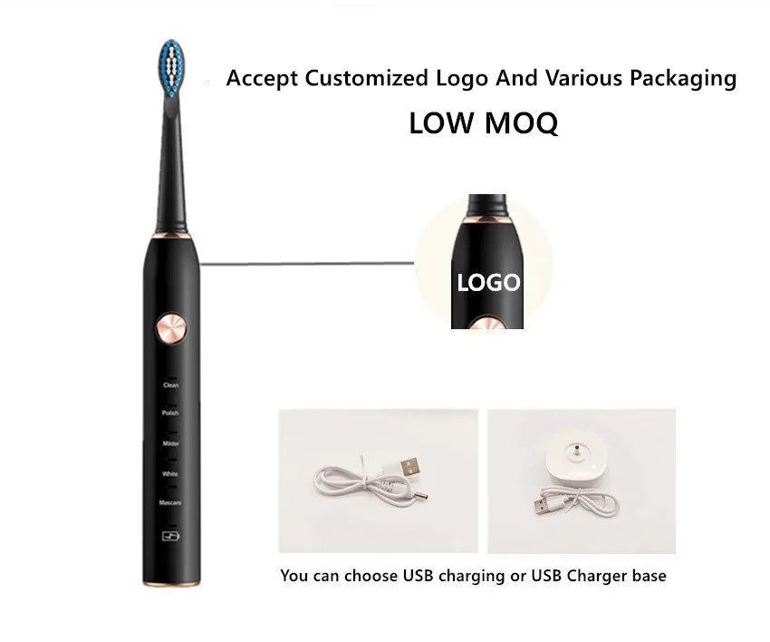 Adult Travel Waterproof Personalized China Private Label Usb Rechargeable Smart Ultrasonic Electronic Sonic Electric Toothbrush