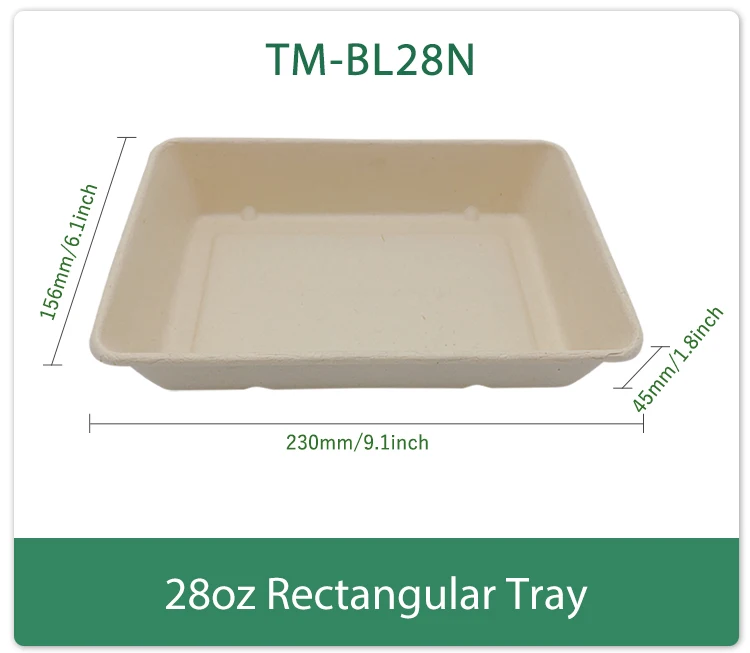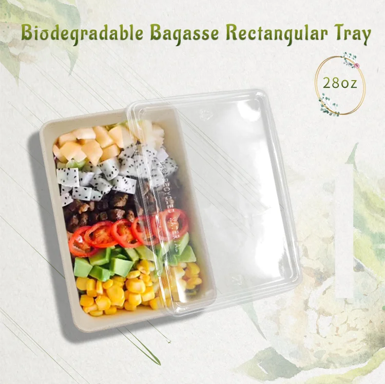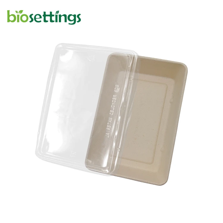 Бесплатная прямоугольная Зеленая упаковка PFAS экологически чистые большие лотки для суши набор из целлюлозы сахарного тростника контейнер с крышкой