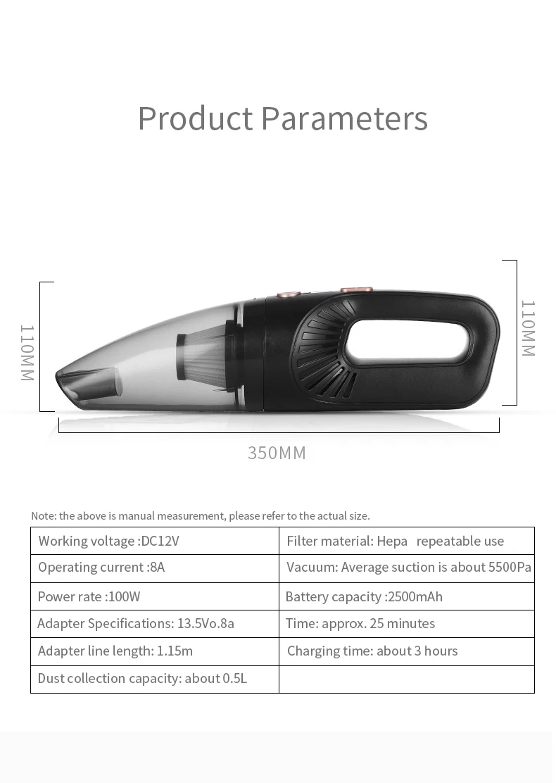 [Product name] dry and wet dual vehicle vacuum cleaner [product color] black body + black switch (can be fixed color) [product material] main material: ABS+ copper