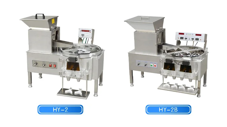 A: HY-Series are mainly used for TableTop counting, operator needs to manually put bottle under counting nozzle. The advantage of the machine are no change parts, suitable for all kinds object and economic cost. CountPro-Series machine is only used for count capsules, the advantage is economic cost with Fully Automatic Function. LTEC-Series is suitable for all kinds of objects without change parts, Fully Automatic, 100% accuracy, High Speed and multifunction.