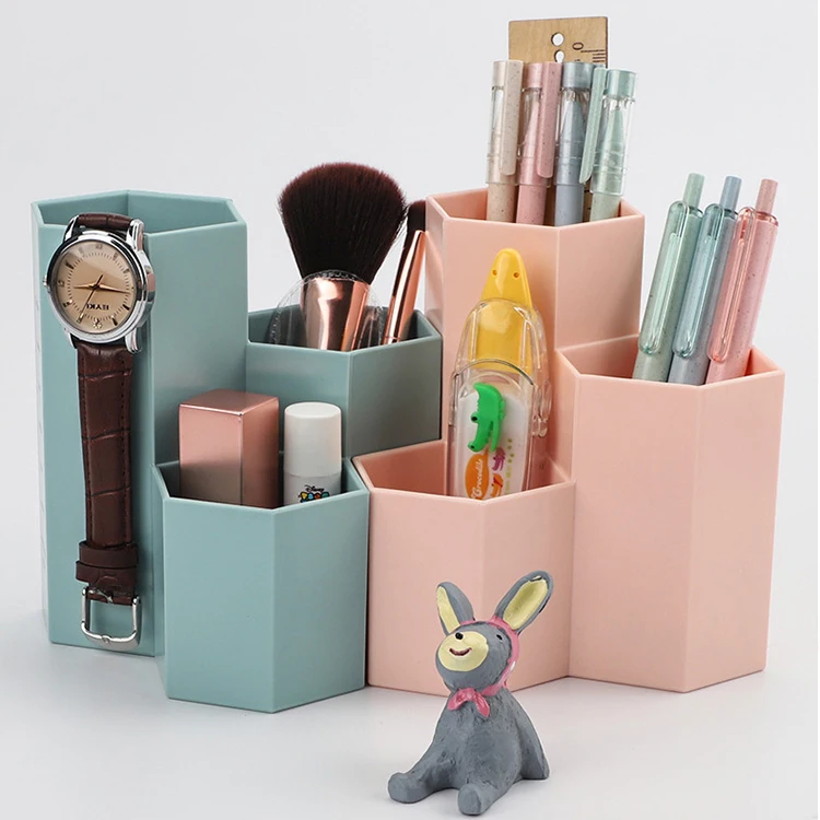 Item Name | Creative Multifunctional 3 Slot Pen Container Stationery Storage Desk Decoration Hexagon Pen Holder For Makeup Brushes |