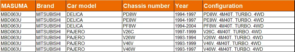 MASUMA нет. | MBD063U |