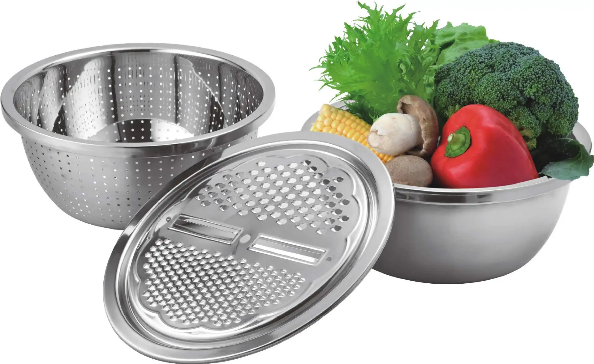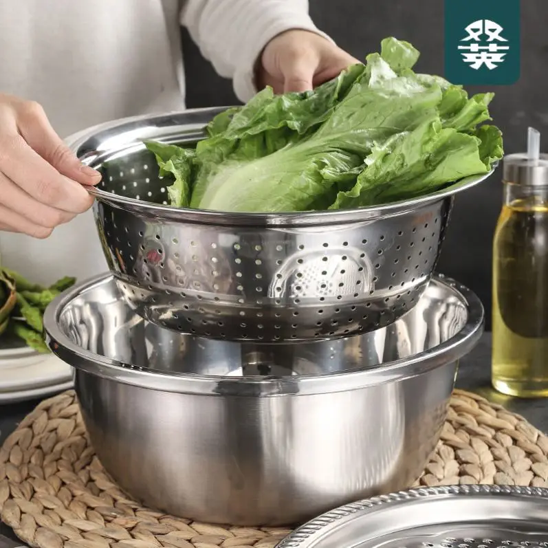 Нержавеющая сталь кухонный нож дуршлаги 2 в 1 для овощей и фруктов чашу комплект тонкой сетки/пластичная Shredding сливная раковина умывальника корзина